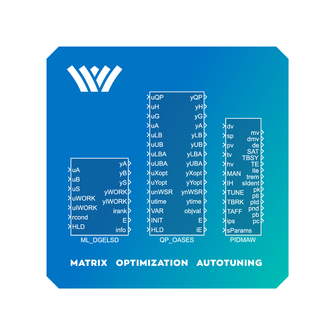 Optimalizační bloky jsou volitelné funkční bloky určené pro různé optimalizační algoritmy použitelné v řídicích systémech. V aktuální verzi jsou implementovány bloky pro lineární prediktivní řízení (MPC, Model based Predictive Control), jejichž funkce je následující: